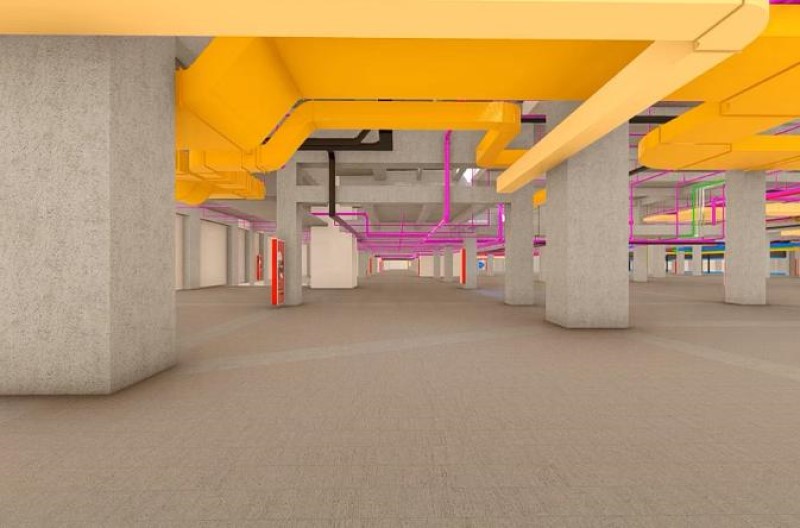項目全程應用BIM技術,覆蓋設計、生產、施工、管理全周期。設計階段,各專業設計師依托BIM模型協同優化管線布置、分析空間凈高,提前規避設計隱患;機電管綜工程中,通過BIM模型1:1還原機電管線布局,施工前模擬定位,有效解決 “錯漏碰撞” 難題,安裝完成后還通過實際施工與BIM模型比對校核,確保施工準確率。